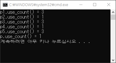 여기서 use_count()는 몇 개의 shared_ptr이 원래 객체를 가리키고 있는지를 알아내는데 사용된다.